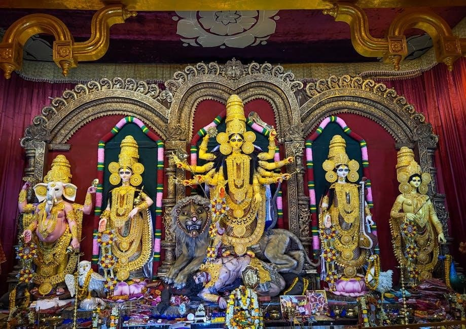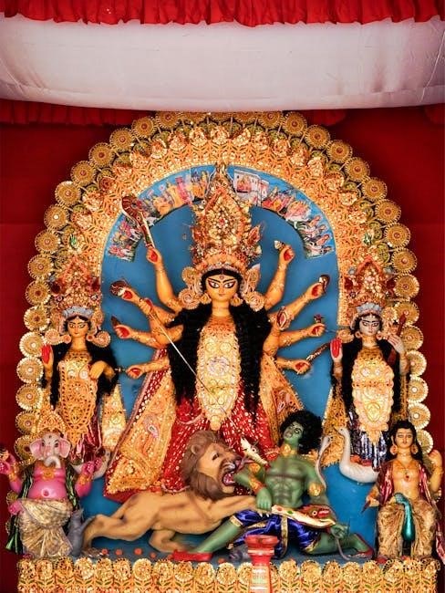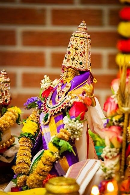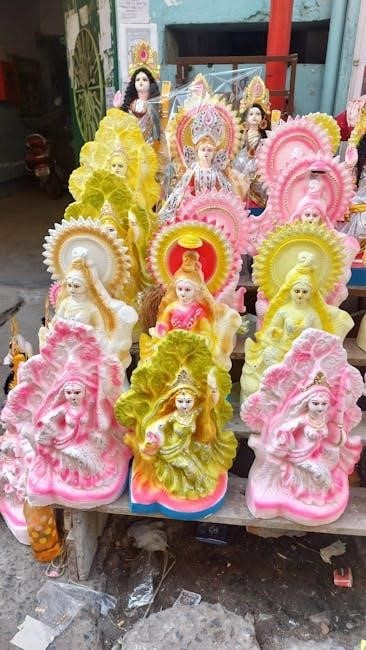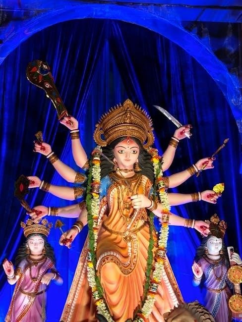 The sword symbolizes the power to overcome obstacles hindering progeny, while the shield offers protection to the child and family. The abhaya mudra, a gesture of reassurance, bestows fearlessness and divine grace. Studying these symbols within the Telugu PDF enhances understanding and devotion during chanting of the 108 names;